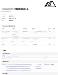 Erstellung und Verwaltung von aufeinander aufbauenden Sitzungsprotokollen, Dokumentation von Entscheidungen, Tracking von Aufgaben